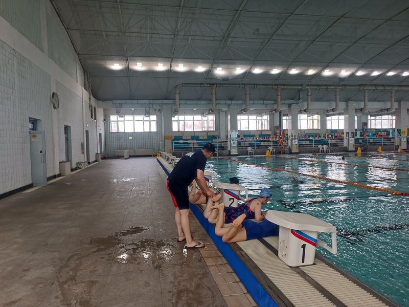 支部共建聚合力,优势互补谱新篇。为深入贯彻落实习近平总书记关于体育的重要论述精神,6月24日上午,yl6809永利特色教研室党支部利用端午假期时间,在一校区游泳馆主办了“奋泳争先,泳往直前”党支部共建活动。特色教研室党支部书记牛荣利和支部党员王海、赵菁、赵健,为来自马克思主义学院形势与政策党支部及其共建党支部的教师代表们进行了游泳教学展示和游泳技术指导,双方还就课程思政的相关问题展开了热烈讨论。