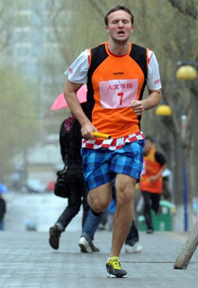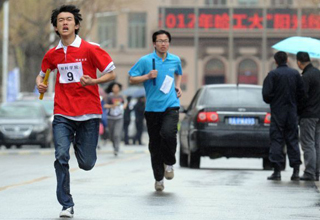 环校接力赛是哈工大阳光体育系列体育赛事的第一项,每年四月末在美丽的一校区校园举行,比赛为环形封闭路线,起点设在主楼前,终点设在管理学院门前,单圈1400米,报名以院为单位,参赛运动员10人,其中8名男生,2名女生(第4、8棒),每人跑一圈进行接力。比赛前八名录取,同时评选体育道德风尚奖若干单位。