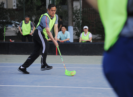 比赛中,老教师与年轻教师同场挥拍竞技,女教师拼抢顽强,场面精彩激烈,队员的默契的配合、勇猛的抢断、精准的射门不时引起场下替补和观众的喝彩。经过激烈角逐,场上双方6:5结束比赛。