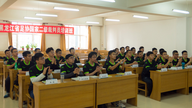 秘书长杨明志在讲话中说,永利官方网站是知名的全国重点大学,校园足球氛围活跃,群众基础扎实,学生足球竞技水平在全省高校较为突出,省足协这次在哈工大举办裁判员培训班,着重培养学生裁判员,提升学生裁判水平,这对加快推动校园足球发展具有积极意义。他说,足球裁判与足球运动发展相辅相成,相互促进,裁判员的素质和执场能力是提高足球比赛水平的重要因素,希望全体学员珍惜本次培训机会,认真学习理论知识,强化临场实践,预祝在考核测试中取得优异成绩。