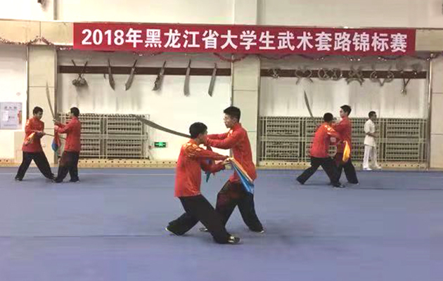 (文/图 武术协会提供)12月2日,由黑龙江省大学生体育协会主办,黑龙江省大学生体育协会武术分会协办、哈尔滨师范大学承办的第十八届黑龙江省大学生武术套路锦标赛历时两天在哈师大落幕。我校首次派队参赛,取得了2金1银3铜、团体总分120分的优异成绩,并获“体育道德风尚奖”,其中周靖淳获男子甲A组刀术、棍术2枚金牌,周守振获男子甲A组单器械银牌,马悠博、刘钰涵、尚世迪分别获得男子乙组长拳铜牌、女子甲A组刀术铜牌、男子甲A组枪术铜牌,同时获3个第四名、6个第五名、9个第六名、3个第七名和2个第八名。