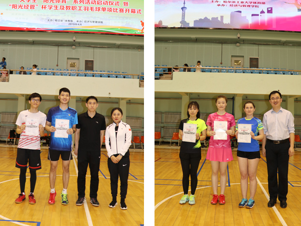 4月15日,由校yl6809永利和校工会主办、经济与管理学院承办的2019年永利官方网站“阳光经管杯”学生及教职工羽毛球单项赛历时三天圆满结束。经过激烈角逐,在教职工组比赛中,刘国军(计算机学院)/常青(外国语学院)获混合双打冠军,孙雪/梁宏(机关)获女子双打冠军,陈绍文/胡彦伟(能源学院)获男子双打冠军,陈绍卓(yl6809永利)获男子单打冠军,刘松(yl6809永利)获女子单打冠军,张凤淼(数学学院)/高宝泉(yl6809永利)获男子组百岁组合冠军,关晓红/常青(外国语学院)获女子组百岁组合冠军;在学生组比赛中,唐朝、秦伊人、卢才磊/张振铎、娜斯佳/崔璨、周纬航/秦伊人分获男子单打、女子单打、男子双打、女子双打和混合双打第一名。
