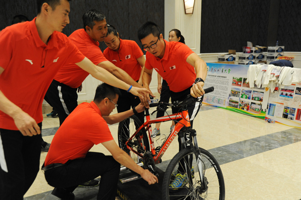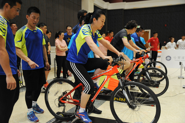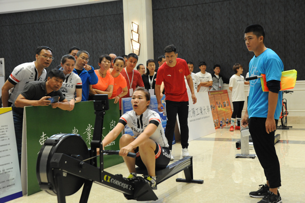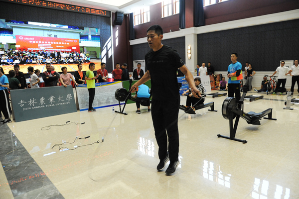21日上午还举办了体育教师骑划跳混合团体接力比赛,共有16所高校参加了角逐。骑划跳即滚筒自行车-骑行赛、划船机-赛艇赛、跳绳赛,本次比赛为团体赛,每队六人,男运动员4人、女运动员2人,其中yl6809永利领导1人,50岁以上教师1人。比赛中每人要独立完成1公里骑行、500米划船和100次跳绳,此项目运动强度较大,体能要求教高,这对参赛选手和团队是一次很大的挑战。开幕式上,我校yl6809永利党委书记孙慧丽致辞,陶永纯主任主持仪式。比赛中,运动员们奋勇拼搏,超越自我,坚持完赛,表现了良好的意志品质和团队合作精神,教师们对本次比赛给予了很高评价。骑划跳是一种训练手段也是一个比赛项目,在我校学生自行车俱乐部及自行车课程中得到广泛开展,校队多次在各种比赛中取得了优异成绩。