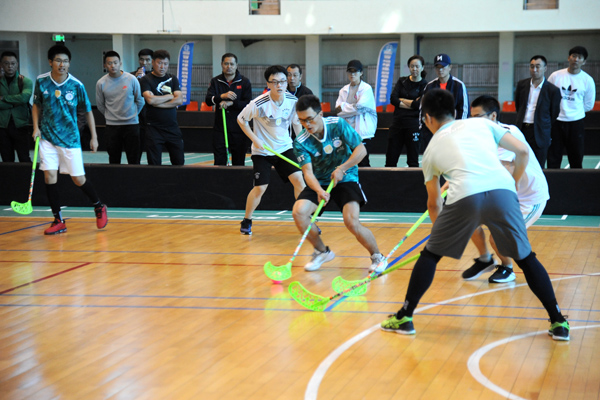 22日上午,各参会单位的教师在一校区体育馆观摩了我校学生雪地球比赛。中场休息时,教练关晓龙为大家介绍了该项运动的发展历史、比赛规则及基本技战术并示范动作,教师们兴致很高,纷纷进行了体验并进行了交流。雪地球运动在是一项新兴体育项目,我校是全国最早开设此课程的高校,成为冰雪特色课程,其娱乐性和锻炼价值较高,深受学生欢迎和喜爱,在校园中得到很好的发展,学生代表队也多次在各级比赛中取得优异成绩。