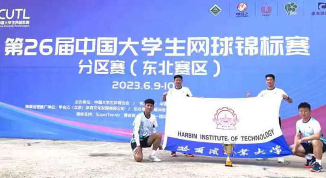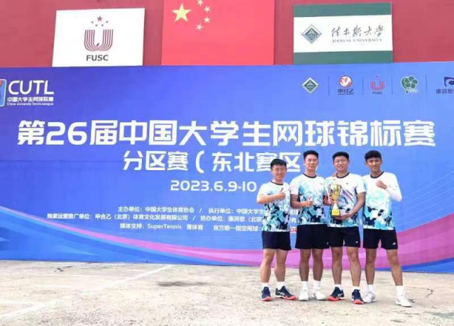 2023年6月10日,第26届中国大学生网球锦标赛分区赛(东北赛区)在佳木斯大学落下帷幕。在本次比赛中,我校阳光组男子网球队派出了汝鑫、夏宇良、王沐禹、任韬四名主力队员,队员们克服重重困难,敢打敢拼,最终获得了男子普通组团体亚军,并成功晋级中国大学生网球锦标赛全国总决赛!