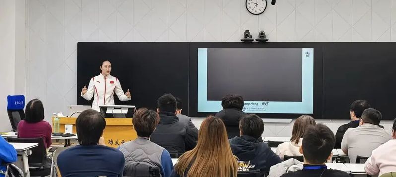 在讲座中,张虹通过一幅幅生动的图片,带领学员重温2014年索契冬奥会的难忘经历和夺金瞬间。她动情讲述了自己从练习短道速滑到转项速度滑冰、从国际大赛崭露头角到实现中国速度滑冰冬奥会金牌零的突破、再到当选国际奥委会委员的心路历程。