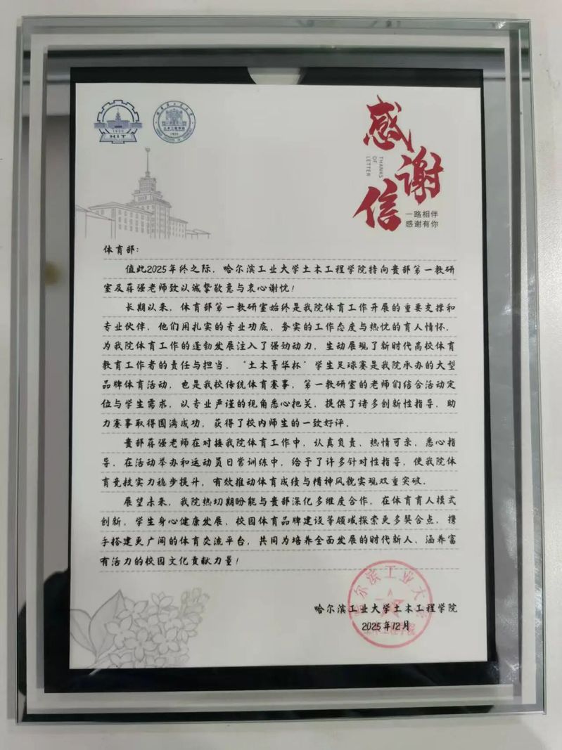 信中对yl6809永利在近一年来对学院相关工作、活动中提供的支持与协助表示诚挚谢意。土木工程学院对yl6809永利展现出的高效协作精神、专业能力与热情服务给予了高度评价。