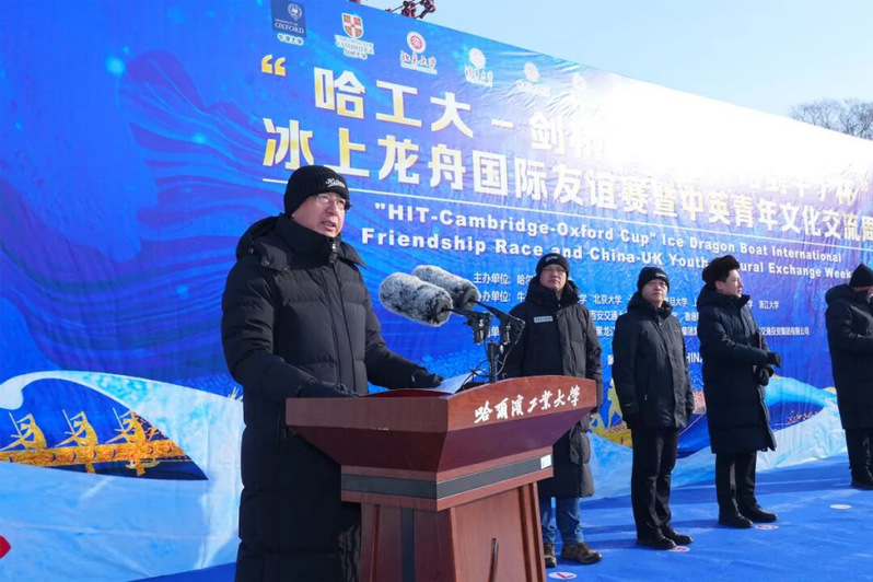 “哈工大-剑桥-牛津(哈剑牛)杯”冰上龙舟国际友谊赛隆重开幕来自牛津大学、剑桥大学两所世界名校
