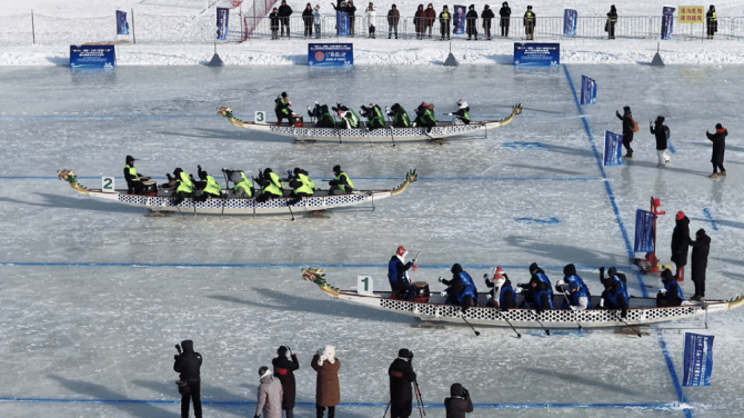 百年传统邂逅冰上龙舟